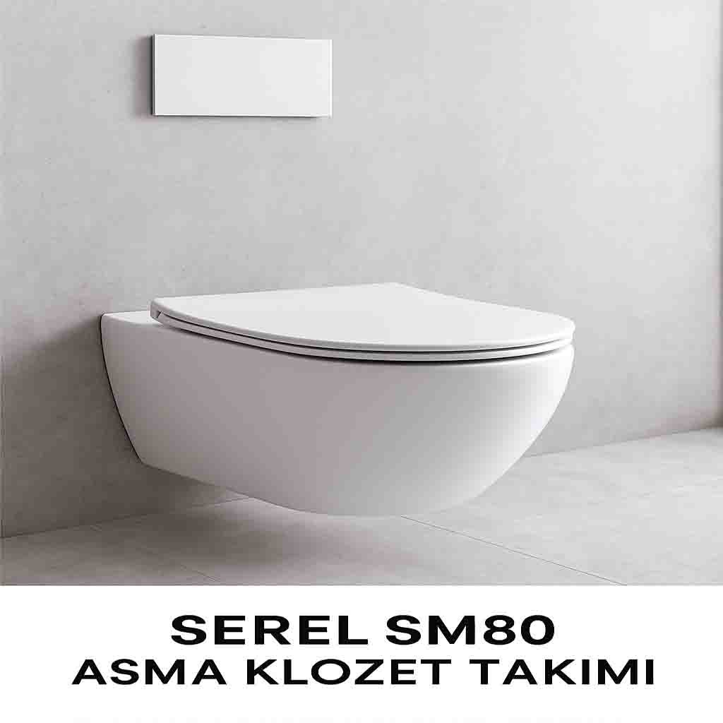 Serel SM80 asma klozet takımı, modern banyolar için minimalist ve şık bir tasarıma sahiptir. Kolay temizlenebilir yüzeyi sayesinde hijyenik bir kullanım sunar. Gizli rezervuar sistemi ile yerden tasarruf sağlar ve estetik bir görünüm kazandırır.